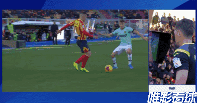 上半场补时第2分钟,多纳蒂前场左侧的传中给到后点,巴巴卡尔的头球攻门打在森西的手臂上,主裁判果断指向了12码点,在经过VAR确认后,主裁改变了判罚,示意这并不是点球。