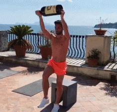 ▌渴了来一口?默滕斯天台手举巨型红酒健身