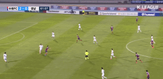 第61分钟庆南两位后卫配合失误,联手为水原城再送上一份大礼。