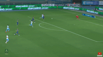在伤停补时阶段,因莫比莱上演了帽子戏法,但这个点球争议极大。因莫比莱从左肋纵向冲刺杀入禁区,维罗纳门将拉杜诺维奇倒地出击。在发生身体接触之后,因莫比莱非常夸张地倒在了禁区内。主裁吹罚点球,因莫比莱笑纳大礼。