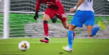 从慢镜头来看,因莫比莱这个造点球有很大争议。拉杜诺维奇并没有主动触碰到因莫比莱,反倒是因莫比莱的右膝盖直接撞在了拉杜诺维奇的头部。