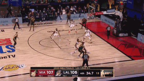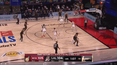 1分01秒,詹姆斯突破巴特勒的防守,后者应被吹一次投篮犯规;
