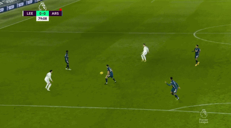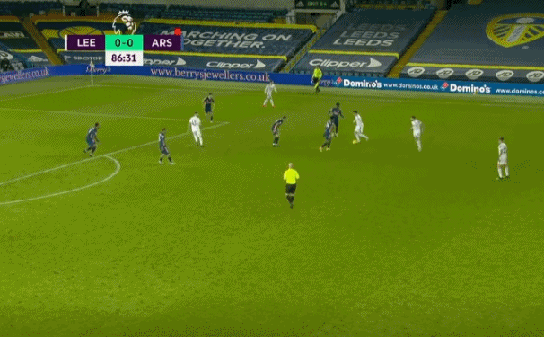 第94分钟,罗德里戈传球,拉菲尼亚禁区左侧抽射踢中立柱。全场比赛结束,利兹联0-0阿森纳。