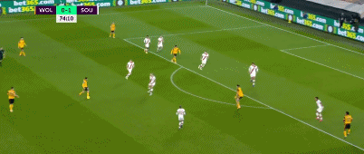 第58分钟,南安普顿前场送出过顶传中,C-亚当斯右侧底线突破后送出倒三角横传,门前无人盯防的沃尔科特轻松推射空门得分!0-1!