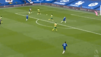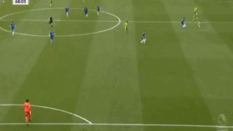 上半场补时第2分钟,约翰斯通后场大脚开出球门球,精准长传找到禁区前的佩雷拉,切尔西两名中卫压上,佩雷拉禁区线上不作调整漂亮的凌空挑射破门,1-1扳平比分。佩雷拉的进球打破了图赫尔上任后蓝军联赛主场没丢球的历史,也打破了蓝军10场不丢球的纪录。1分钟后,菲利普斯禁区右侧的搓射被横梁弹出。