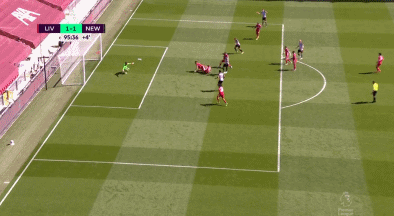 伤停补时最后1分钟,纽卡斯尔中场吊传至禁区,盖尔头球摆渡,威洛克抢到第二落点起脚打门,皮球应声入网,1-1,纽卡斯尔实现绝平。