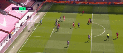 伤停补时第2分钟,圣马克西曼中场传球,威尔逊包抄推射被阿利松扑出,随后威尔逊抢到第二落点后扫射空门入网。慢动作回放,皮球先打在威尔逊手上,进球无效。