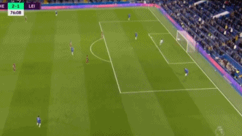 第76分钟,里卡多-佩雷拉禁区右侧横敲,球蹭到蓝军防守球员后变线,弧顶伊希纳乔抽射稍偏。门迪球门球传给詹姆斯,詹姆斯传给科瓦契奇,科瓦契奇带球失误被恩迪迪抢断,恩迪迪横传禁区中路,点球点附近伊希纳乔跟上抽射破门扳回一分,莱斯特1-2。