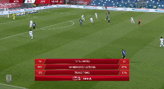 第72分钟,基耶萨前场左侧与禁区弧顶处的库卢塞夫斯基来了一次二过一配合,随后基耶萨在禁区内左侧面对门将抽射得分,尤文图斯2-1亚特兰大。第75分钟,C罗在禁区前偏右侧的远射,打在对方球员身上飞出底线。第79分钟,C罗与罗梅罗在禁区内抢位置时有过一次身体接触,C罗愤怒的撞了一下罗梅罗,双方有些口角。