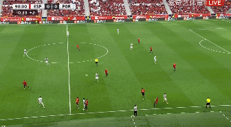第90+1分钟,莫拉塔得到一次单刀球机会,禁区内左侧的抽射,皮球击中横梁。全场比赛结束,西班牙与葡萄牙踢成0-0平局。