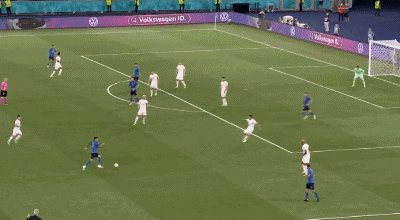 第26分钟,意大利中后场斜长传发起反击,贝拉尔迪右路得球后突入禁区倒三角回敲,洛卡特利门前包抄破门,意大利1-0领先,23岁159天的洛卡特利是本届欧洲杯到目前为止最年轻的进球者。