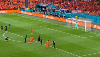 1分钟后,德佩前场左侧带球抹入禁区后倒三角回敲,维纳尔杜姆包抄点球点附近右脚推射,辛特雷格奋力将球解围。上半场比赛结束,荷兰1-0暂时领先奥地利。