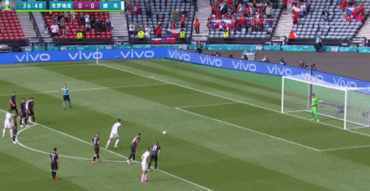 第34分钟,扬克托右路传中,洛夫伦与希克在禁区内争抢时相撞,随后希克满脸是血倒在禁区内。主裁判在查看VAR之后判定洛夫伦肘击犯规,对其出示黄牌,并判给捷克队一个点球。挂彩后的希克亲自主罚推射左下角命中,1-0!希克也凭借三粒进球暂时登顶本届欧洲杯射手榜榜首。半场战罢,捷克暂时1-0领先克罗地亚。