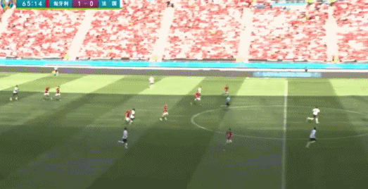 第27分钟,姆巴佩主罚任意球,人墙中的尼科利奇被足球击中面部后倒地。第29分钟,匈牙利长传,洛里出击将球拿到。第31分钟,法国挑传禁区内,姆巴佩停球后撩传,本泽马顺势射门打偏。第33分钟,姆巴佩带球突入禁区后连续过人,随后射门偏出远门柱。第37分钟,博格巴在禁区右侧小角度射门击中边网。第43分钟,匈牙利反击,萨拉伊禁区外远射打在队友菲欧拉身上。上半场补时第2分钟,帕瓦尔后场失误被断球,菲欧拉头球摆渡,萨拉伊撞墙式配合,菲欧拉突入禁区左侧后射门得分,匈牙利1-0!上半场结束,匈牙利暂时1-0领先法国。