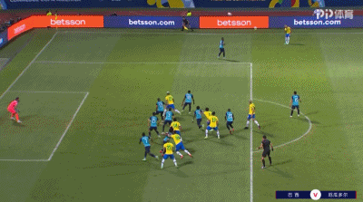 第37分钟,埃弗顿开出右侧任意球,米利唐高高跳起后头球破门,巴西1-0!