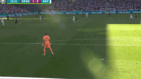 第20分钟,佩德里在中场附近的回传,西蒙停球失误,皮球直接飞入球门,克罗地亚1-0西班牙。
