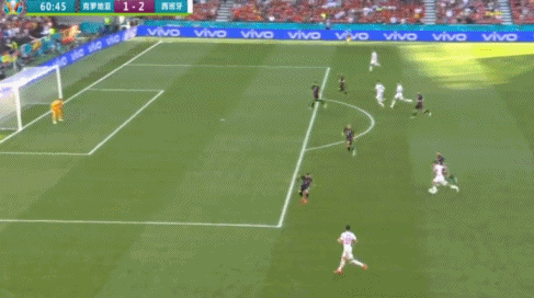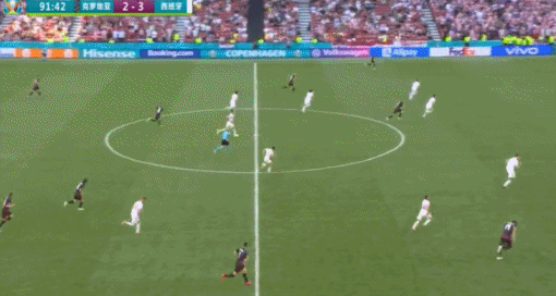 第90+2分钟,奥尔西奇在禁区左侧的45度传中,帕萨利奇头球攻门,皮球入网,克罗地亚扳平比分3-3西班牙。