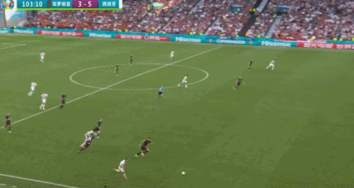 第103分钟,莫拉塔中前场右侧拿球,直塞身前奥尔莫,后者传中扫到禁区中路,奥亚萨瓦尔插上得球左脚抽射破门,西班牙5-3克罗地亚。