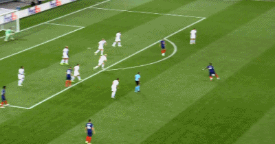 第90分钟,扎卡中路精准直传,加夫拉诺维奇禁区前沿晃过金彭贝,右脚冷静远射破门,3-3!瑞士队神奇的最后时刻扳平比分!补时最后时刻,西索科右路传中,科曼右脚抽射踢在了横梁上!常规时间战罢,法国3-3瑞士,比赛进入到加时赛中。