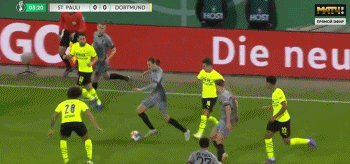 第58分钟,多特蒙德扳回一城,哈兰德破门,2-1。多特蒙德推进到前场,胡梅尔斯禁区内试图起脚传中,皮球击中了圣保利球员梅迪奇手臂,多特蒙德获得点球机会,哈兰德站在点球点前,大幅度助跑后,骗过门将把球打进网窝。
