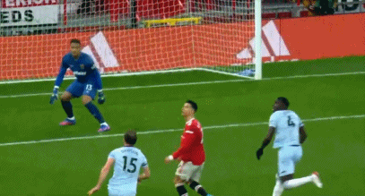 第36分钟,特莱斯长传,C罗插入禁区想要胸部停球,被祖马干扰倒地,C罗认为祖马犯规高举双手要点球但主裁莫斯没表示。