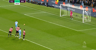 第69分钟,大卫-拉亚传球失误,斯特林断球后推射被扑出,德布劳内跟上再射将球打进,曼城2-0布伦特福德。