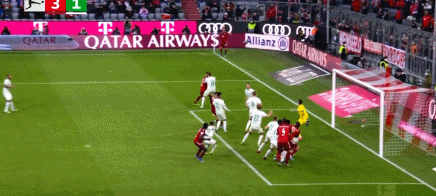 第42分钟,赫尔戈塔踢禁区前任意球直接起脚射门,皮球踢中萨比策身体折射飞进球门,0-1,拜仁主场比分落后。
