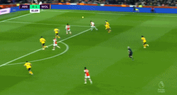 第10分钟,加布里埃尔后场传球失误被黄喜灿断球,后者随即小角度推射空门得手,狼队1-0阿森纳。↓