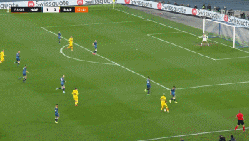 87分钟尼科禁区内停球失误被抢断,波利塔诺禁区右侧大力低射破门。2-4,那不勒斯扳回一球!90分钟佩塔尼亚禁区右侧小角度大力推射,特尔施特根单手将球扑出底线,1分钟后登贝莱禁区弧右侧兜射高出横梁。92分钟加维拉拽波利塔诺被黄牌警告,他将因累计黄牌缺席下轮。