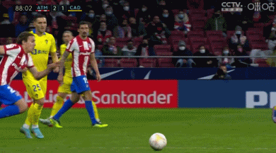 上半场比赛开始不到3分钟,莱德斯马禁区内出球失误,菲利克斯断球后稍作调整抽射破门,马竞1-0领先。