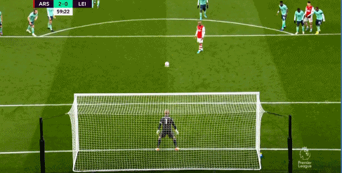 第54分钟,本-怀特禁区里射门被小舒梅切尔扑出,托马斯头球补射又被对手在门前挡出,VAR检查认为瑟因居手触球挡出射门,拉卡泽特踢点球抽射入网,2-0,阿森纳扩大比分优势。