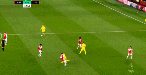 第51分钟,蒂亚戈回传失误被断,拉卡泽特吸引阿利松出击后回传,厄德高中路推射被阿利松伸臂扑出,阿森纳错过进球良机,角球开出后扎卡远射被阿利松没收。