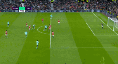 第95分钟,拉什福德前插,他和埃兰加同时摔倒在禁区内,曼联要点球,但裁判示意埃兰加越位,而且回放看是埃兰加想要射门结果踢在拉什福德身上两人摔倒。