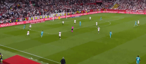 第21分钟,莫德里奇犯规,塞维利亚获得任意球机会,拉基蒂奇主罚直接打门,皮球从皇马人墙的人缝中钻入大门,皇马0-1落后!