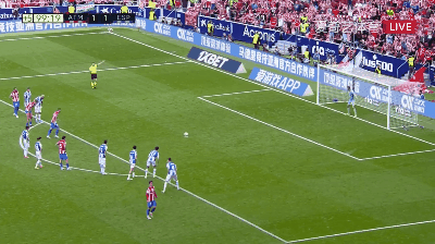 第95分钟,德托马斯在角球解围时手球犯规,主裁判在观看VAR后判给马竞点球,卡拉斯科主罚推射球门左下角命中,在完成梅开二度的同时绝杀西班牙人。