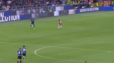 上半场比赛第4分钟,巴雷拉斜传禁区右侧,达米安横传中路,劳塔罗迎球凌空抽射破门,国米1-0领先。