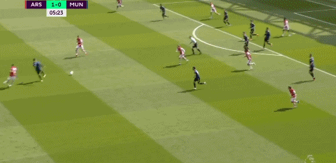 上半场,曼联在阿森纳的后场断球高达11次,阿森纳的中场线一破防,防线基本就剩两招。