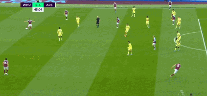 第44分钟,赖斯转移球,曹法尔右路传中,鲍文停球后扫射破门,1-1,西汉姆追平比分。半场战罢,阿森纳1-1战平西汉姆。