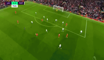 第74分钟,路易斯-迪亚斯禁区前横切,禁区弧顶右脚抽射破门,利物浦1-1。