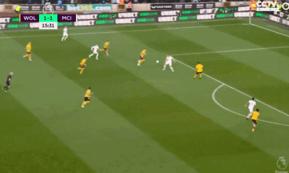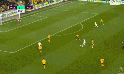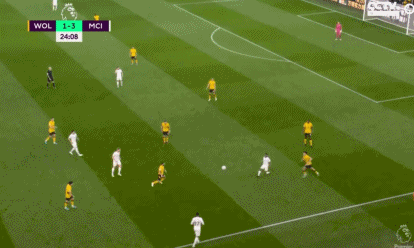 第24分钟,本场比赛最精彩的进球出现。曼城发出前场界外球,斯特林拿球被破坏,德布劳内随后接球并直捣黄龙。在行进的过程中,德布劳内无视面前的多位狼队球员,在大禁区弧顶处兜射死角,这球力度大、角度刁,门将毫无办法,3-1。