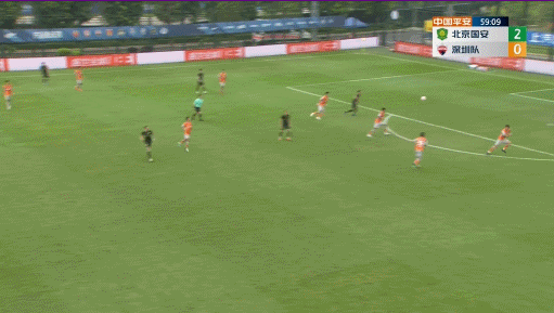 第78分钟,梅米舍维奇被林采民放倒,国安获得弧顶前任意球,池忠国和张稀哲商量了接近1分钟后打出战术配合,但张稀哲的传球最终被断,深圳打出反击,阿奇姆一路推进,然后在禁区线上人球分过,好在王刚奋力回追将球破坏。
