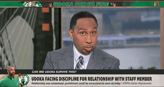 ESPN名嘴史蒂芬-A-史密斯最新在节目里也提及这个热点话题,他说自己站在乌度卡一边,因为白人教练经常干类似的事情却没事,而乌度卡因为是黑人教练,就被凯尔特人将此事捅了出来,而且面临重罚。