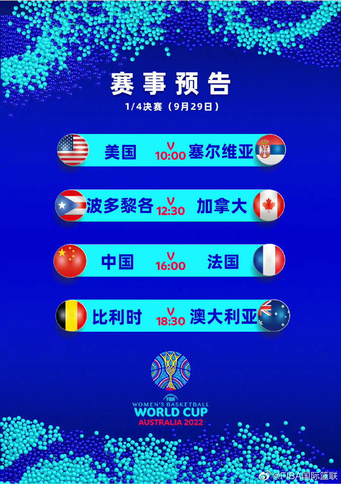 nba直播讯 2022女篮世界杯8强已经出炉,北京时间29日将进行1/4决赛的争夺。