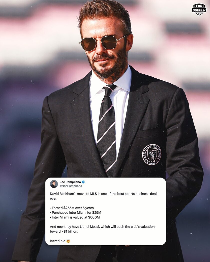 nba直播讯 据美媒报道,在签下梅西后,迈阿密国际俱乐部可能将成为美职联第一支市值超过10亿的球队,而贝克汉姆当时仅花费2500万美元便得到了这家俱乐部。