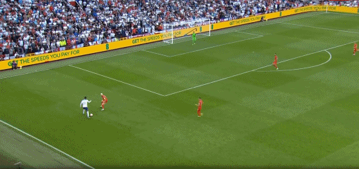 第47分钟,阿诺德长传,萨卡晃过防守球员,大力抽射梅开二度,英格兰4-0!