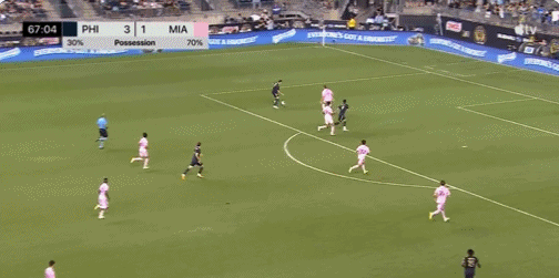 比赛第50分钟,罗伯特-泰勒为迈阿密国际扳回一球,1-3费城联合