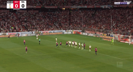 第2分钟,劳姆主罚任意球开出,亨里希斯背身做球,奥尔莫顺势低射得手,拜仁慕尼黑0-1RB莱比锡!