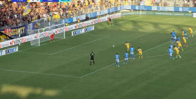 第5分钟,卡尤斯特犯规送点,主裁判判罚点球!哈鲁伊主罚点球命中,弗洛西诺内1-0!