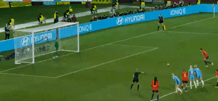 比赛进行到第29分钟,西班牙女足队长奥尔加-卡蒙娜左脚低射破门,西班牙队1-0取得领先。