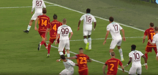 第81分钟,罗马角球机会,贝洛蒂中路甩头攻门将球打进,罗马2-2萨勒尼塔纳。